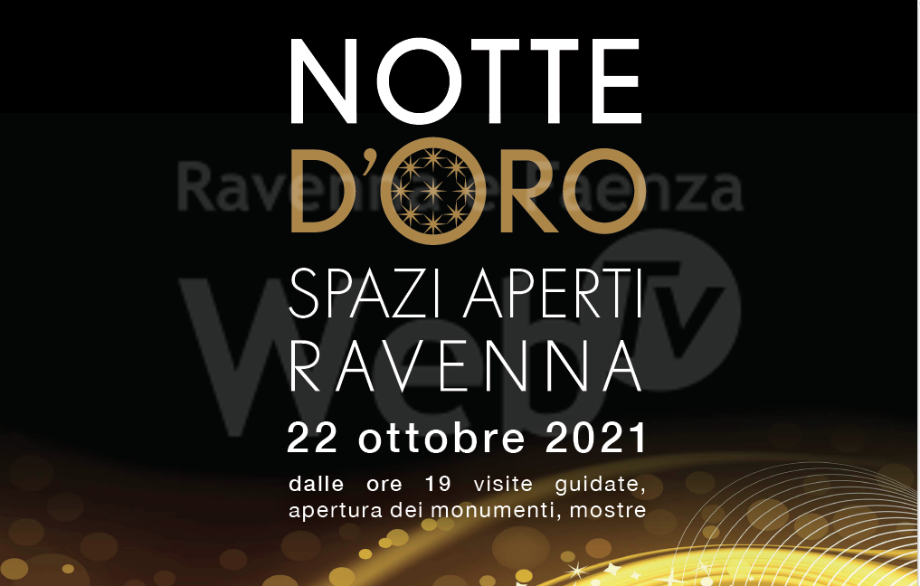 Una Notte d’Oro – Spazi aperti alla scoperta dei tesori della città di Ravenna. Venerdì 22 ottobre, oltre all’apertura serale dei negozi che aderiranno, sarà possibile visitare, di sera, i luoghi più suggestivi della città.