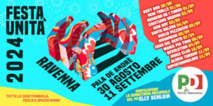 La Festa dell’Unità di Ravenna prenderà il via venerdì 30 agosto al Pala De André in viale Europa 1 e proseguirà fino all’11 settembre.