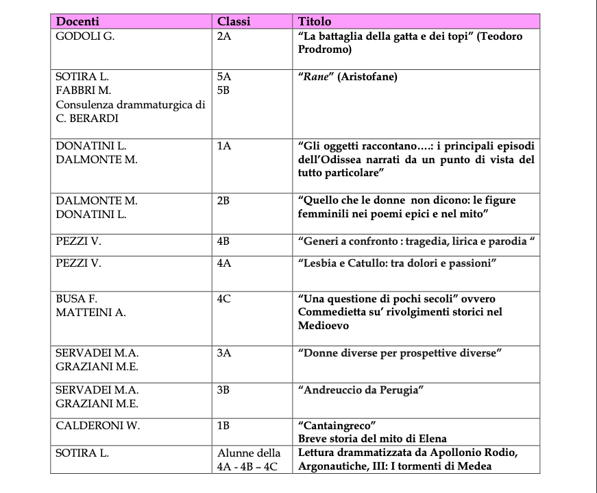 Nel servizio il programma del liceo Torricelli di Faenza. Di seguito il programma del liceo Alighieri di Ravenna: