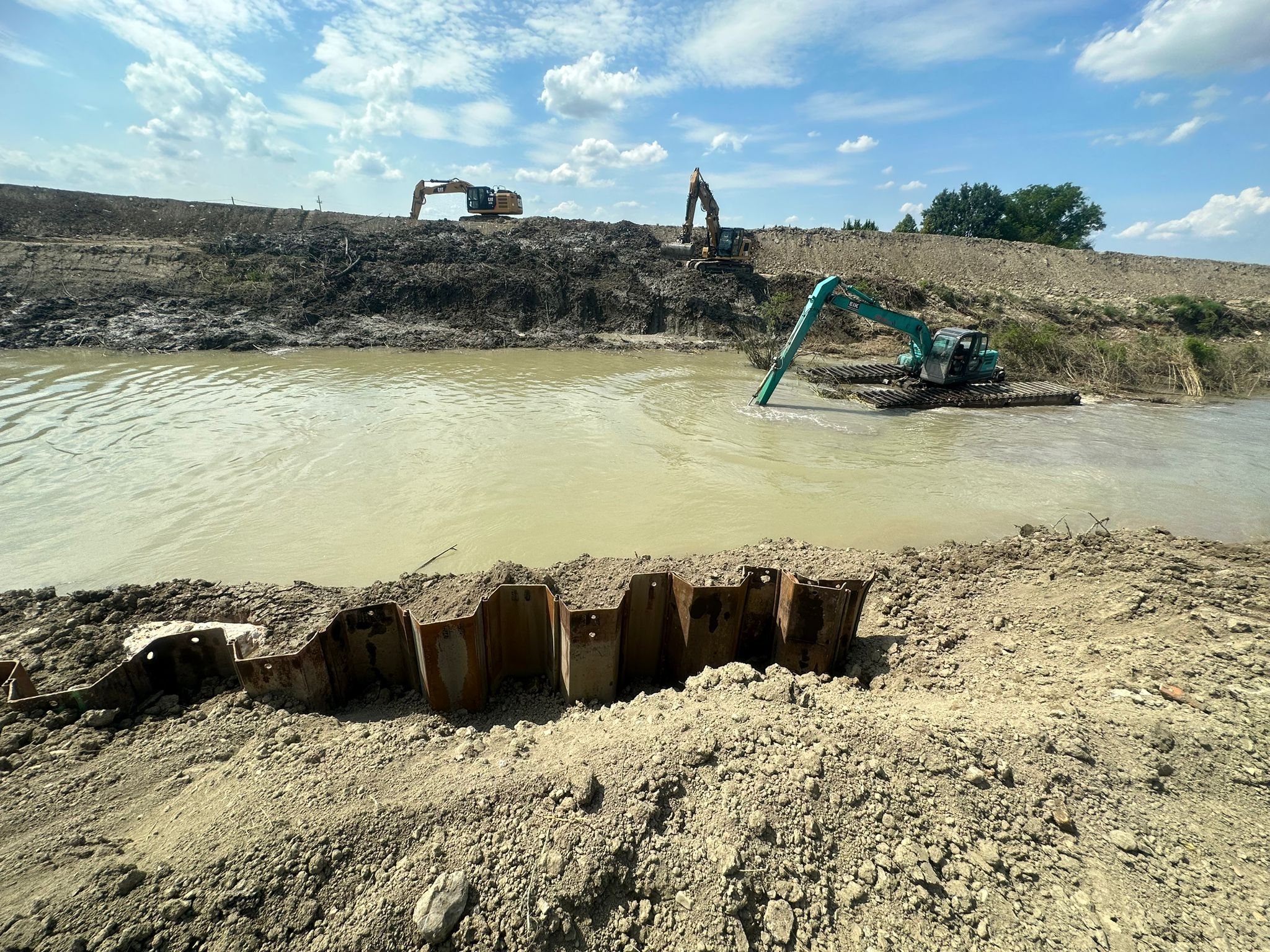 Proseguono intanto i lavori a Ca’ di Lugo, in provincia di Ravenna, per il consolidamento degli argini del fiume Santerno, dopo i danni causati dall’alluvione. Quello a Ca’ di Lugo è uno dei cantieri più complessi, in cui il fondo alveo si è occluso a causa del cedimento interno delle sponde provocato dall’enorme quantità di acqua caduta. In questo momento si sta procedendo speditamente alla chiusura della rottura arginale dovuta alla tracimazione e nella ricostruzione della sommità arginale, con il posizionamento di massi ciclopici e palancole, in un tratto di circa 80 metri e la sigillatura con argilla. I lavori proseguiranno poi con la pulizia del fondo alveo e, a partire dalla seconda metà di giugno, con la ricostruzione e il consolidamento dell’argine destro fino a San Lorenzo e di quello nel tratto da Santa Maria in Fabriago verso monte.