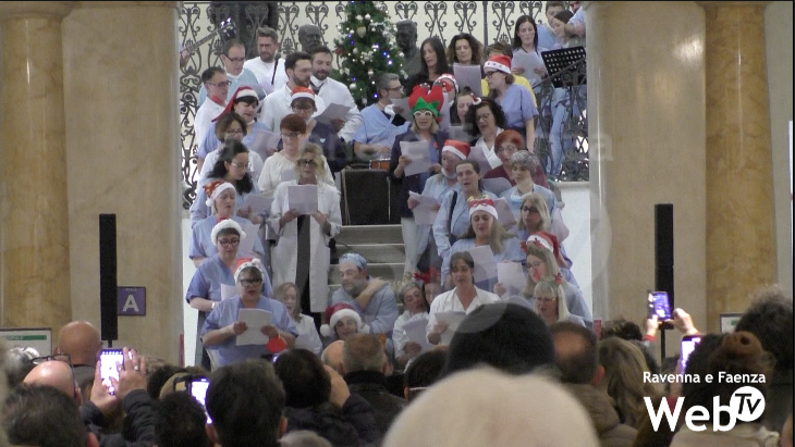 Il coro di Natale dell’ospedale di Faenza torna a cantare sullo scalone monumentale del nosocomio. L’appuntamento musicale che si ripete da una decina d’anni, a causa delle restrizioni dovute al covid, era stato trasferito in Piazza della Libertà, ma per i lavoratori dell’ospedale, o ex lavoratori oggi in pensione, non poteva avere lo stesso significato simbolico. Con il ritorno sulla scalinata quasi iconica per la comunità faentina, il concerto di Natale è tornato ad essere un messaggio vero e proprio rivolto ai pazienti ricoverati in questi giorni e ai rispettivi parenti.