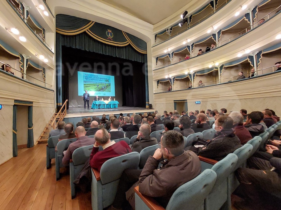 “L’agricoltura è un asset importante dell’economia circolare ed oggi, grazie all’opportunità dell’agri-voltaico, può ulteriormente contribuire alla transizione ecologica del Paese dando anche risposte importanti alla crisi energetica che ha aggredito le imprese”. Questo il messaggio che il Direttore di Coldiretti Ravenna, Assuero Zampini, ha lanciato agli oltre 300 imprenditori agricoli intervenuti nella serata di ieri, 6 marzo, al convegno “Agri-voltaico, una soluzione sostenibile per l’agricoltura”, promosso da Coldiretti Ravenna e Società Cooperativa Mirasole presso il Teatro Comunale di Russi.