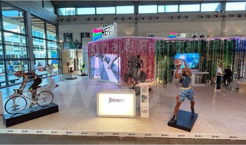Sarà un’autovettura di Formula 1, lunga 4,4 metri come l’originale e realizzata utilizzando i rifiuti provenienti dall’alluvione del maggio scorso, ad accogliere all’ingresso della Fiera i visitatori di Ecomondo. Un’opera d’arte realizzata per ricordare l’evento straordinario che ha segnato il territorio emiliano-romagnolo e creata sempre all’interno del progetto SCART del Gruppo Hera, che anima anche in questa edizione lo spazio espositivo della multiutility. Quest’anno, tutte le opere d’arte presenti nello stand sono state create con scarti provenienti da attività sportive: circa 30 nuove opere ispirate al mondo dello sport realizzate utilizzando rigorosamente materiali di recupero provenienti da impianti di trattamento e selezione della multiutility, nel nome della Waste Art e della circolarità. A queste opere hanno collaborato i creativi della Community Scart Artist e gli studenti e i docenti delle Accademie di Belle Arti di Firenze, Ravenna e Rimini. La parte più scenografica è costituita dalla barriera a forma di onda, un’installazione con un caleidoscopico spettacolo di colori, realizzata con circa 3000 metri di filamenti in plastica assemblati con maestria dai ragazzi del Design Lab di San Patrignano: coordinati dal loro tutor artistico Sandro Pieri, durante il percorso di recupero, sono stati in grado di lavorare la materia con grande creatività.