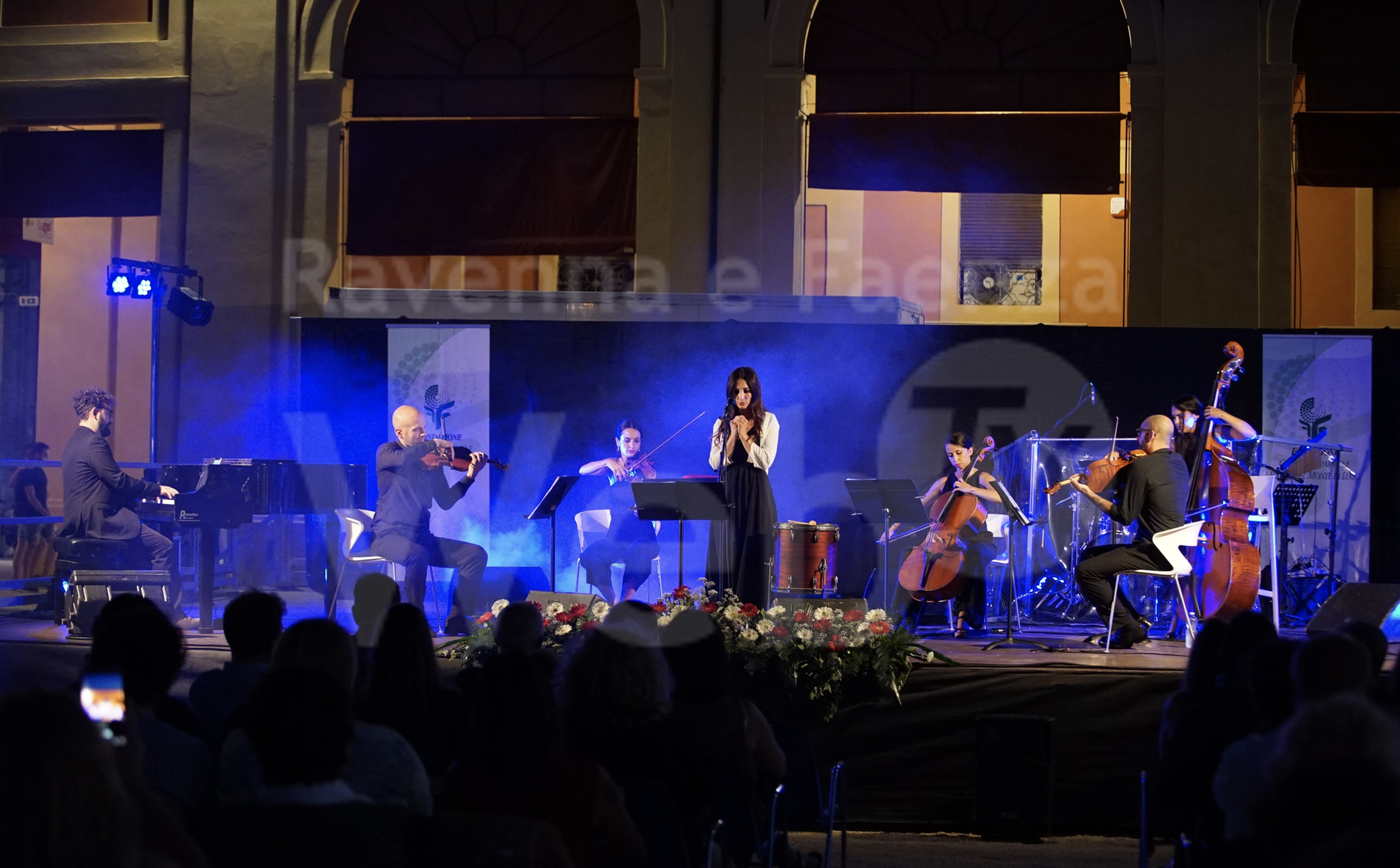 La serata, iniziata con un elegante omaggio al Maestro Ennio Morricone, è stata un susseguirsi dei brani più emozionanti che hanno segnato la carriera dell’indimenticabile Mia. L’interpretazione di Roberta Montanari è stata sincera ed emozionante, non cercando mai di emulare l’originale, regalando invece personale profondità alle parole e alle melodie di ogni canzone. Il ricordo è stato incorniciato dagli arrangiamenti di Matteo Del Soldà (alla viola), tanto arditi quanto molto apprezzabili nella loro colta eccellenza, e dalla bravura degli altri musicisti Matteo Penazzi (violino), anima di Lugo Music Festival, Sara Signa (violino), Anna Montemagni (violoncello), Vanessa Matamoros (contrabbasso), Pietro Beltrani (pianoforte), Daniele Sabatani (percussioni).