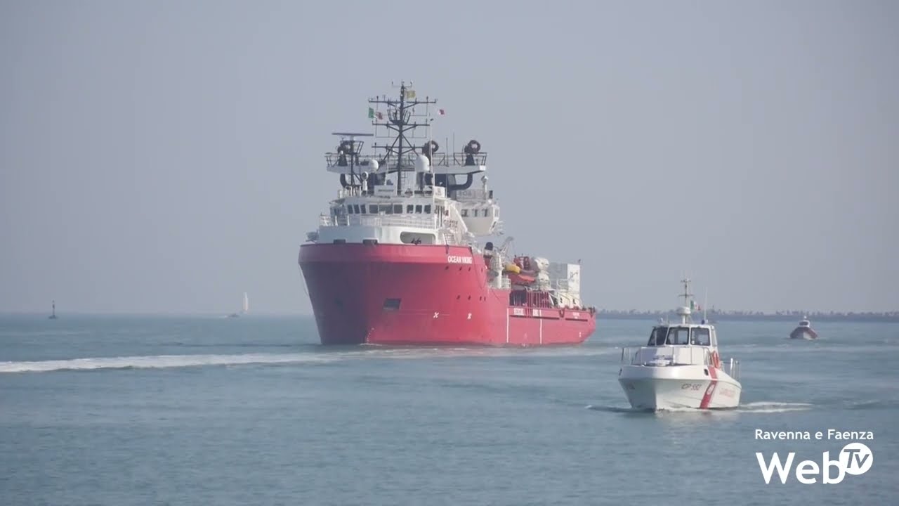 È arrivata al terminal crociere del porto di Ravenna la nave Ocean Viking con 84 migranti a bordo, di cui 58 minori. 280 persone impegnate per assisterli. Le immagini della giornata.