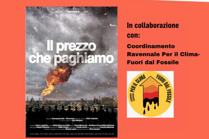 Venerdì 24 ottobre è in programma alla Sala Ragazzini, alle 20.30, la proiezione del documentario “Il prezzo che paghiamo”, prodotto da Greenpeace e da Re-Common. La serata è realizzata in collaborazione con il coordinamento ravennate “Per il Clima – Fuori dal Fossile”.