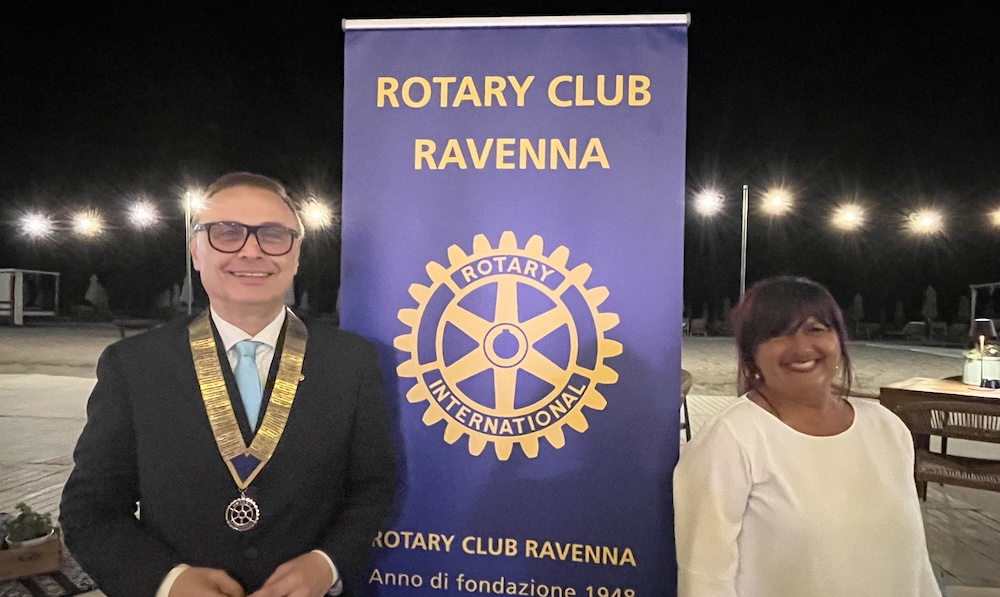 Passaggio di testimone alla guida del Rotary Club Ravenna tra Paola Babini e Gennaro Zinno. Martedì sera, al Marepineta Beach di Milano Marittima si è svolta la cerimonia del passaggio del collare che ogni anno investe il nuovo presidente del club della sua responsabilità.
