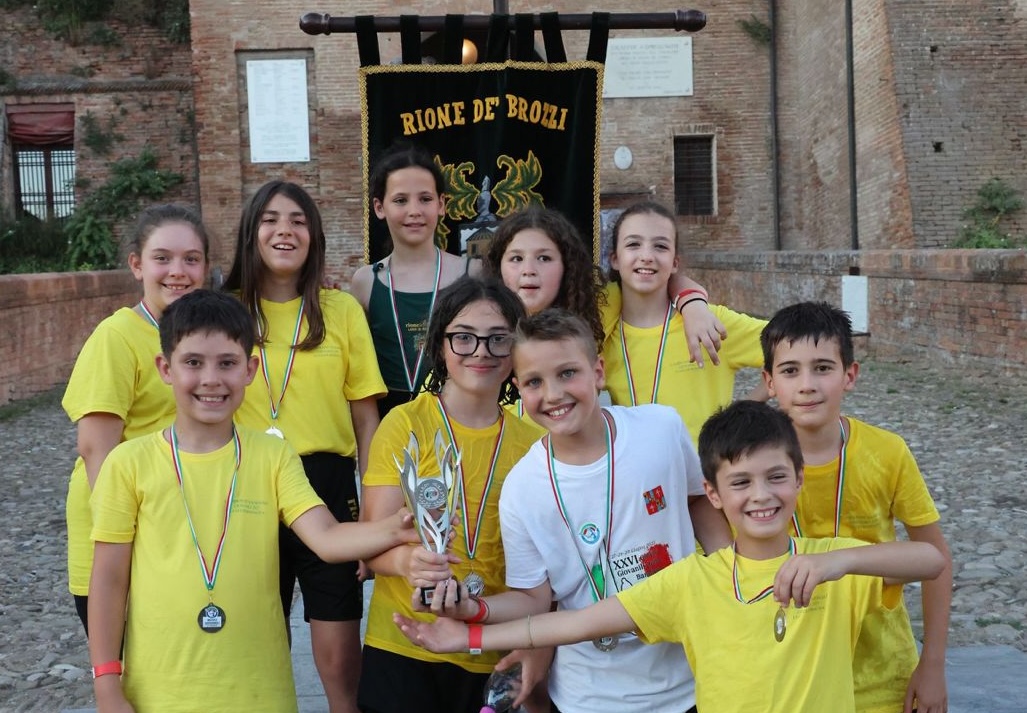 E tra i quaranta gruppi giunti in Romagna dal 27 al 29 giugno in rappresentanza di contrade e borghi di ogni angolo d’Italia, anche il Rione De’ Brozzi di Lugo ha saputo ritagliarsi un ruolo di assoluto protagonista, non solo per aver contribuito, al fianco della Contesa Estense e degli altri rioni lughesi, all’organizzazione del grande evento. Anche i giovani atleti gialloverdi hanno reso onore ai loro colori con una serie di piazzamenti e di risultati di primissimo piano ottenuti proprio sui campi gara che solitamente ospitano le prove della Contesa Estense del mese di maggio e davanti a sostenitori e familiari che li hanno sostenuti con il loro tifo.