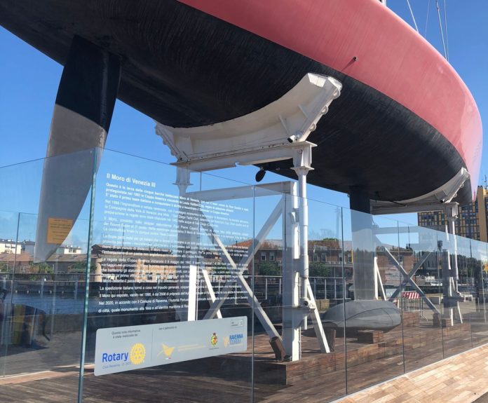Giusto in tempo per l’apertura al pubblico della mostra “il Moro di Venezia / America’s Cup 1992”, a Palazzo Rasponi fino al 26 settembre, il Rotary Club Ravenna ha concluso il service per l’applicazione di una didascalia narrante il Moro lll esposto in darsena.