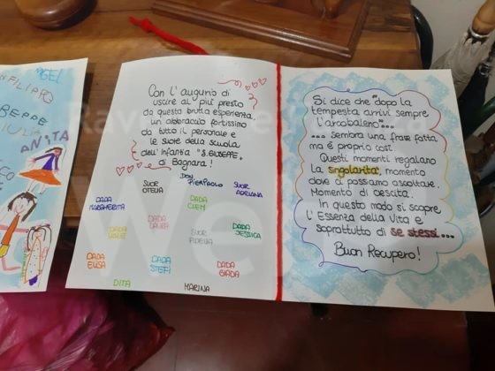“Ho ricevuto un BENVENUTO incredibile da parte dei bimbi della Scuola Materna che mi ha francamente commosso! E per finire ho ricevuto a domicilio la meravigliosa cena di ben tornato offerta da Mirko Rocca che ringrazio infinitamente, ha fatto bene a cuore e cervello.