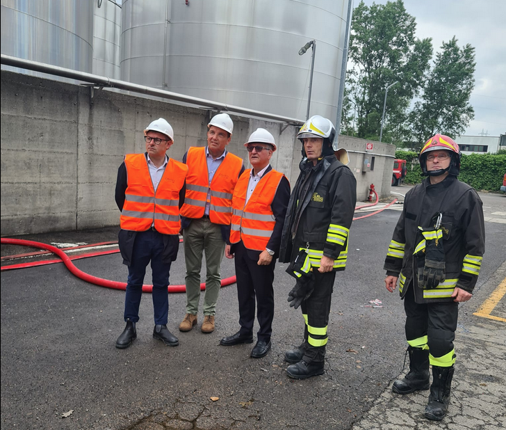 Nella mattinata di martedì il prefetto Castrese De Rosa e il sindaco Massimo Isola hanno fatto visita allo stabilimento di Caviro in via Convertite dove ancora operano i Vigili del Fuoco.