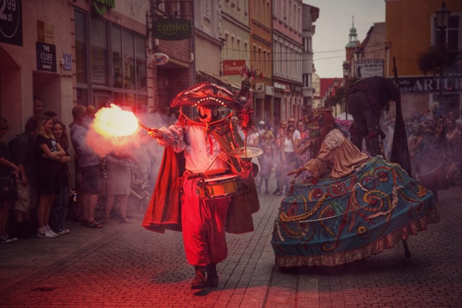 Aggiunge l’attrice Tanja Horstmann: «Di questa tournée mi sono rimasti impressi i tanti cambi scenografici che regala il teatro di strada, grazie alla natura e ai paesaggi che abbiamo attraversato, e il continuo stupore che esso può esistere davvero dappertutto. Abbiamo presentato Fiesta e gli altri spettacoli tra Polonia, Germania e Italia, da laghi e mari a monti e foreste: nei sentieri lungo il fiume San (sul confine tra Polonia e Ucraina), in un parco a pochi chilometri dall’ultima foresta vergine europea (sul confine tra Polonia e Bielorussia), su un lungomare del Mare Baltico col tramonto in sottofondo, sul lungolago del Lago di Lecco dopo una pioggia d’estate, sui prati delle colline del Hunsrück e sulle strade di campagna delle prime colline emiliane, in un parco botanico pieno di fiori nei pressi della Foresta di Turingia, nei borghi antichi sopra il lago di Corbara, sulle sponde del lago Balaton, su una piazzetta nel Bergamasco dove il nostro furgone è arrivato a malapena…».
