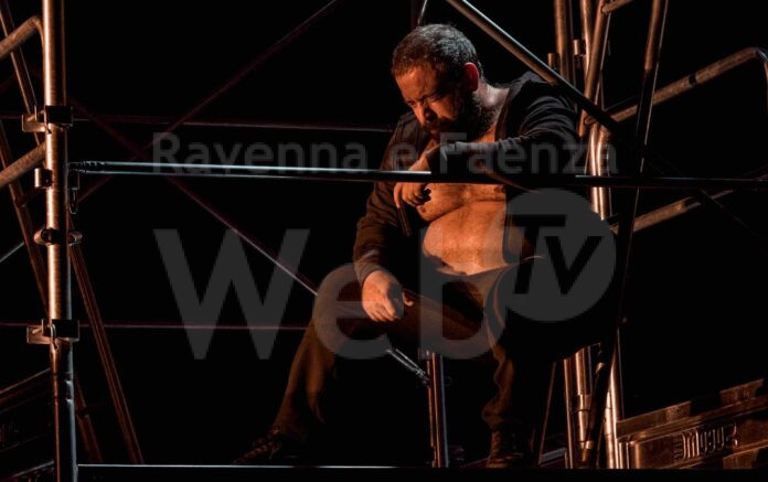Barabba siamo noi e il testo ci consegna una serie di domande, di cui molte bellissime. Pensiamo all’ultima affermazione del protagonista: ‘Ma se Lui mi ha assicurato che me la caverò, allora vuole dire che ci devo credere, perché è venuto qualcuno che mi ha voluto bene’. Una frase del genere, pronunciata da Barabba, liberato al posto del Cristo, che dovrebbe invece essere la Verità, fa riflettere. Tarantino dà voce agli ultimi, e lui stesso ha vissuto una vita ai margini della società. Era schivo, ha ricevuto tanti premi, ma scriveva per necessità, non per essere riconosciuto. È stato una persona umile e molto coerente”. In scena uno straordinario Michele Schiano di Cola, valorizzato dalle luci di Vincent Longuemare. Conclude Teresa Ludovico: “Ho cercato di mettere in scena un corpo imprigionato: noi stessi siamo vittime della nostra condizione e facciamo fatica ad uscirne. Longuemare ha avuto la geniale idea di una struttura di tubi che ricordasse il cantiere, quindi scale, attraversamenti, un corpo imprigionato all’interno di strutture fisiche. Una partitura precisa che corrispondesse ad una altrettanto precisa drammaturgia delle luci, capace di esaltare allo stesso modo il testo e il corpo”.