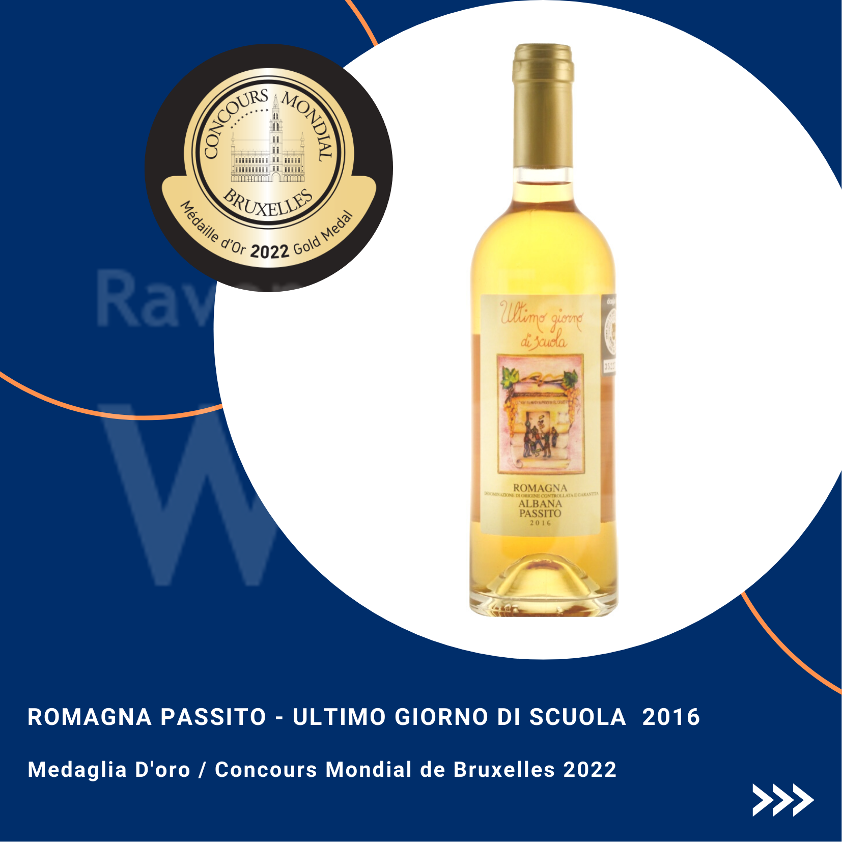 Si è concluso il Concours Mondial de Bruxelles che ha dedicato la sua ultima sessione di degustazione a vini dolci e fortificati. Cinquanta tra i giudici ed esperti del settore hanno attribuito la Medaglia d’Oro al vino Romagna Passito Ultimo giorno di scuola 2016, prodotto all’interno della cantina didattico sperimentale Leonardo da Vinci dell’Istituto Persolino Strocchi di Faenza.