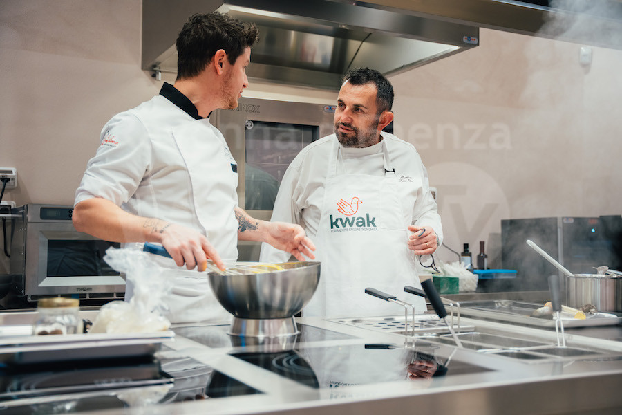 Taglio del nastro per Kwak, la scuola di formazione enogastronomica voluta da Ascom-Confcommercio di Faenza, alla presenza di un gran numero di ristoratori e operatori professionali, a dimostrare l’importanza di questo progetto per la comunità faentina e per la Romagna in generale. Dopo il saluto istituzionale del direttore Francesco Carugati, che ha fortemente voluto il progetto, di Paolo Caroli, presidente di Confcommercio Faenza, e del sindaco Massimo Isola, l’intervento di Donatella Prampolini, vicepresidente nazionale di Confcommercio. «Siamo radicati sui territori e la vitalità di Faenza deve essere un esempio per tutti. Sono orgogliosa di presentare un’iniziativa che incarna nello spirito e nei contenuti la sfida che i tempi ci porgono. Dobbiamo essere più forti dei costi e delle avversità che questi anni ci hanno portato, dobbiamo credere nel futuro e affrontarlo con progettualità e competenze. Il cambiamento deve essere un’opportunità», le parole della Prampolini.