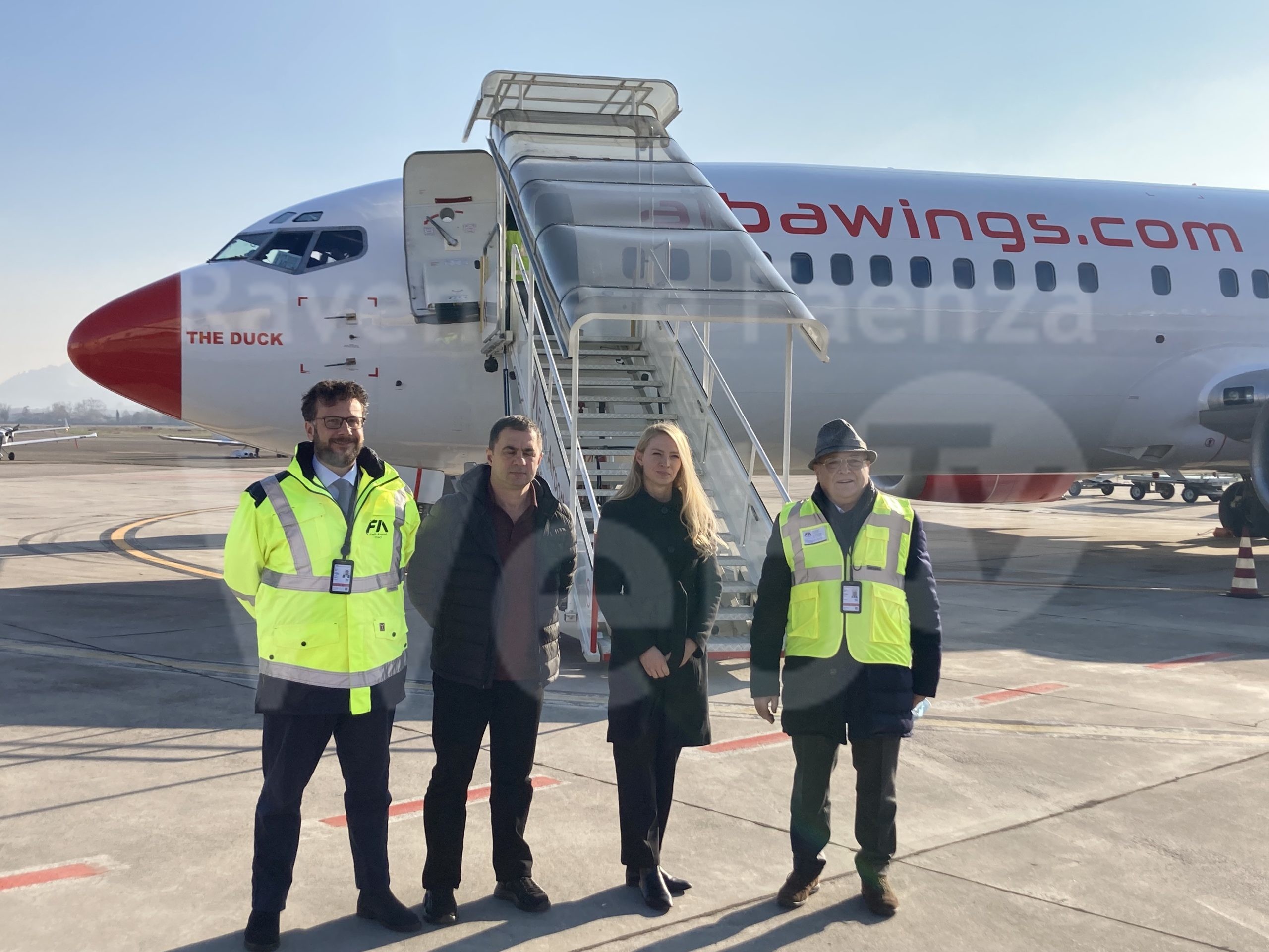 Sul primo volo arrivato da Tirana erano presenti Genti Kole, Chairman di Albawings, Anila Rama, CEO di Albawings e Elda Subashi, HR e Cabin Crew Manager di Albawings, accolti in pista da Giuseppe Silvestrini, Presidente di FA srl, e Alessandro Sozzi, Direttore Generale di FA srl.