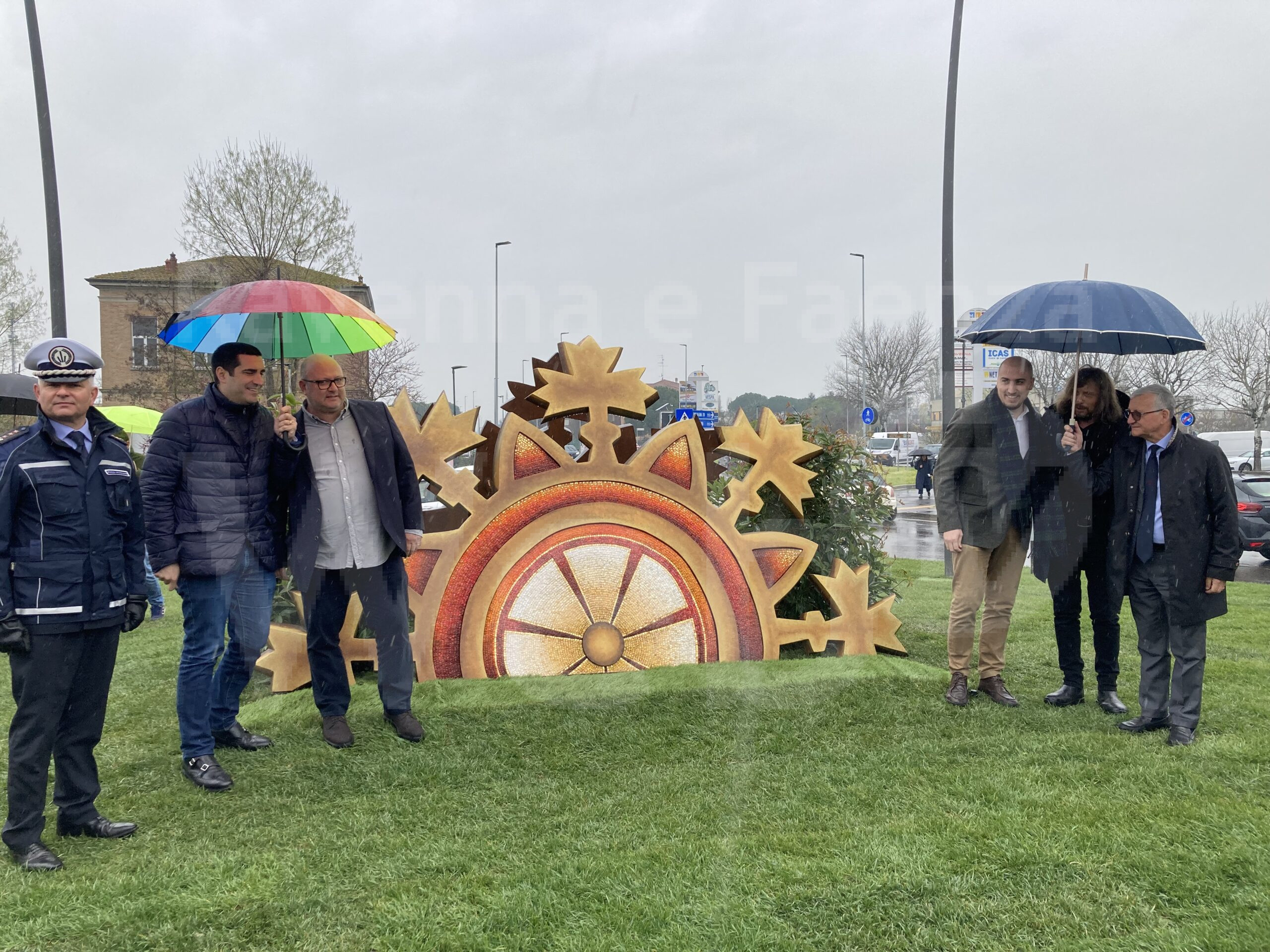 Sono stati gli operatori commerciali della zona a sostenere a gran voce la realizzazione della rotonda, che adesso si abbellisce con una vera e propria opera d’arte, realizzata grazie al contributo economico di Net Seals, e la realizzazione dell’opera dal gruppo mosaicisti ravennati, diretto da Marco Santi.