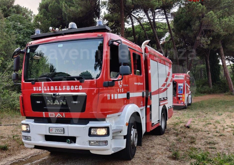 in corso le operazioni di bonifica. Presenti sul posto Carabinieri di Milano Marittima, Carabinieri Forestali, Polizia Municipale di Cervia e volontari AIB della Protezione Civile.