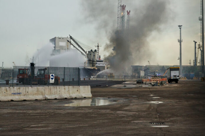 Incendio ad una gru al porto di Ravenna. L’emergenza è scattata alla banchina dell’IFA. Non si conoscono al momento le cause che hanno portato alle fiamme e all’alta colonna di fumo nero visibile da diverse zone della città. Dopo lo scoppio dell’emergenza, allo stabilimento industriale sono accorsi i mezzi antincendio. Oltre che da terra, i Vigili del Fuoco sono intervenuti anche con la motonave dal Candiano.