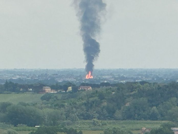 Infatti, alle ore 12.00 è divampato un grosso incendio presso lo stabilimento “Caviro” in Faenza che ha coinvolto 15 serbatoi contenenti alcool etilico per una quantità di 200 m3 ciascuno.
