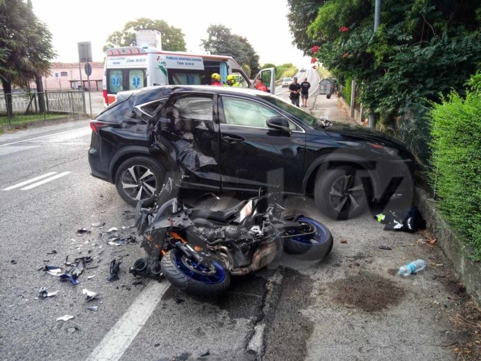 Lo schianto è stato molto violento con effetti visibili sia sulla fiancata posteriore destra della macchina, guidata da una donna, sia sulla moto distrutta nella parte anteriore.