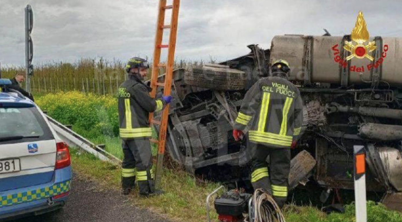 Nell’impatto il camion rompeva il serbatoio del carburante rilasciando un importate quantitativo di gasolio.
