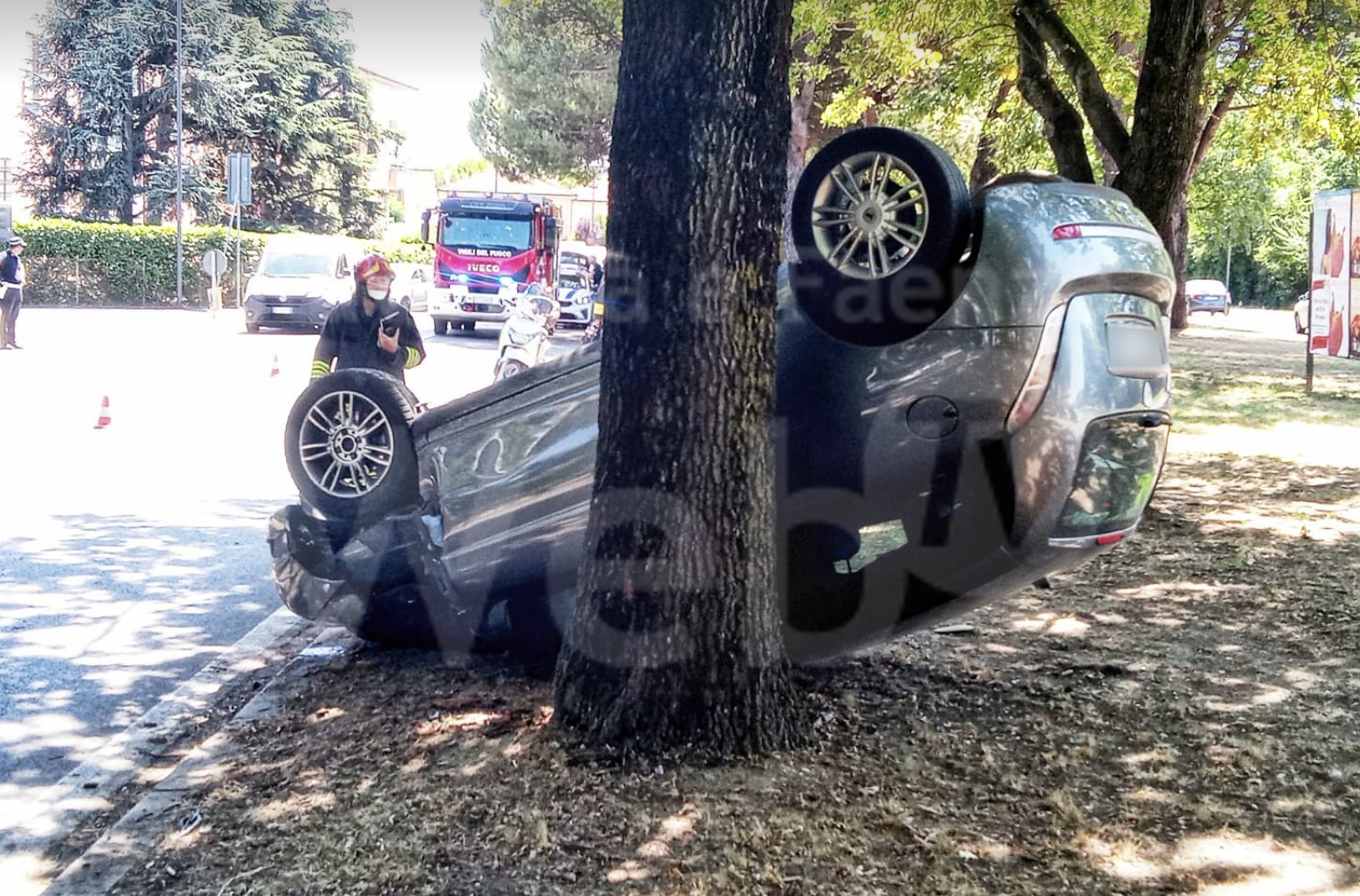 I vigili del Fuoco hanno messo in sicurezza il luogo dove è finita la Lancia Y dopo l’impatto.