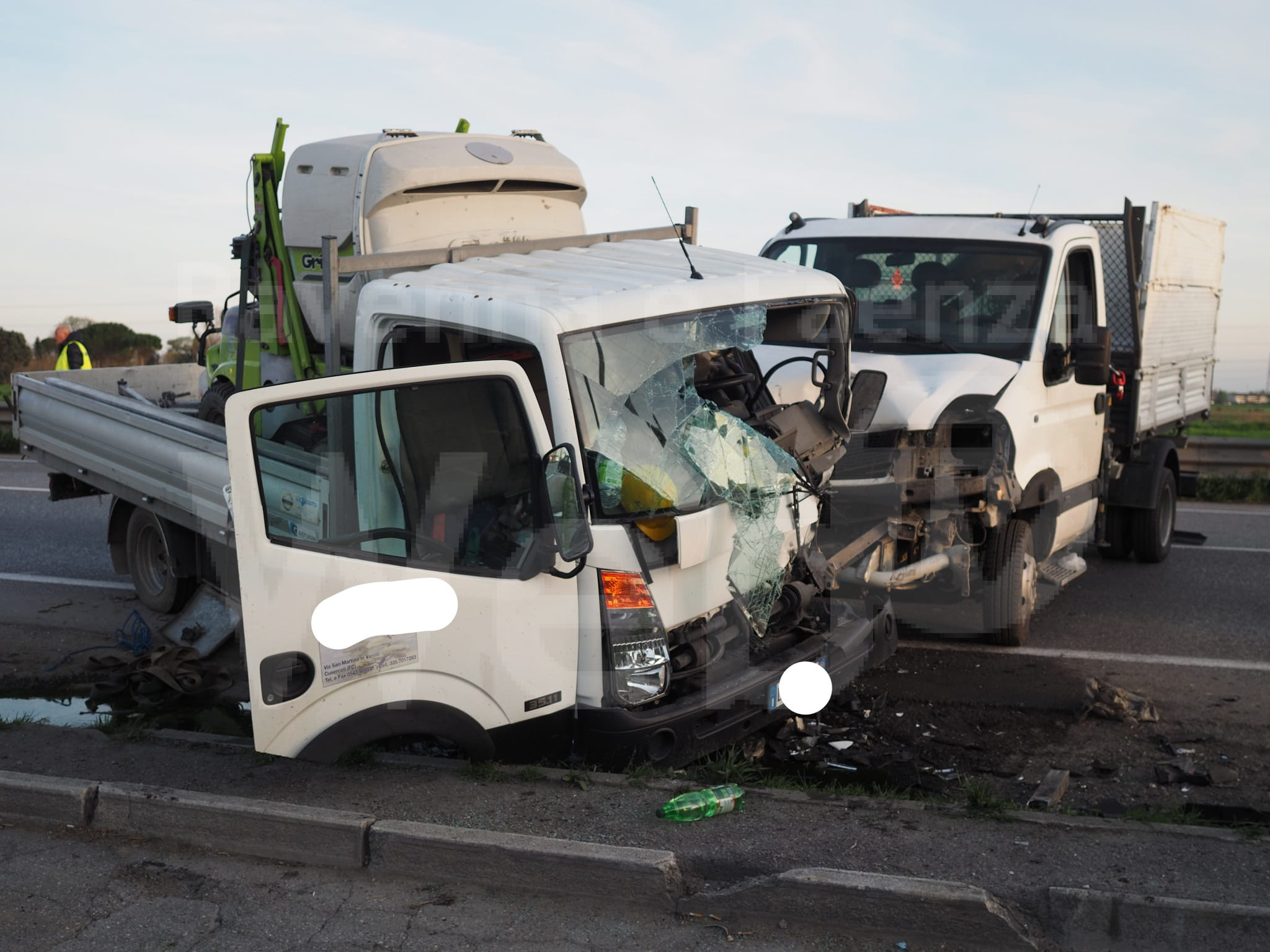 Nel violento impatto uno dei conducenti degli autocarri è rimasto ferito ed è stato trasportato in ospedale con codice 02.