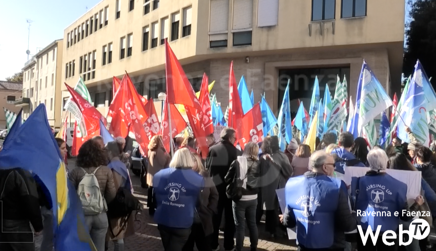 Nursing Up, CGIL, CISL, UIL E Nursind uniti in presidio presso la sede legale dell’AUSL della Romagna, per manifestare contro la decisione unilaterale dell’Azienda di introdurre pronte disponibilità per far fronte alle assenze improvvise.