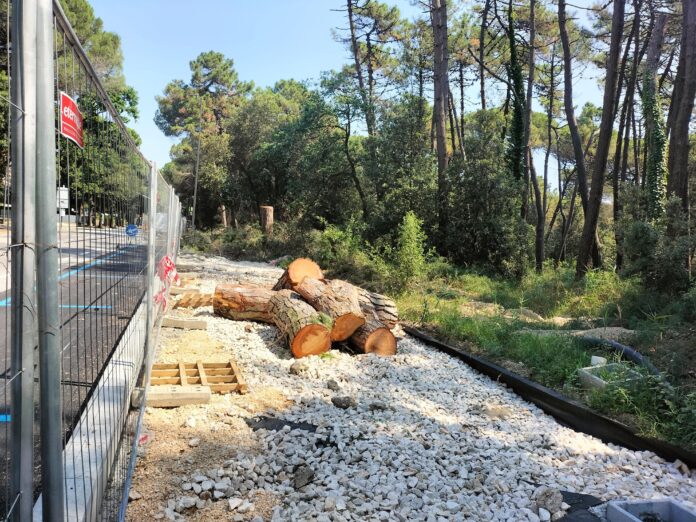 “Ad una prima lettura apprendiamo che, nel capitolo dedicato a “Tutela ambientale e Criteri Ambientali Minimi” della relazione tecnica“La realizzazione del percorso ciclo pedonale non comporterà l’abbattimento di alberature di pregio; in particolare non sarà necessario alcun abbattimento di pini domestici o marittimi. Gli unici alberi per i quali è previsto l’abbattimento sono una acacia nel tratto viale delle palme-via delle Valli, che occupa lo spazio ove è prevista la pista ciclabile, e vari arbusti presenti nelle aiuole presenti nella fascia a parcheggio. Vari punti del percorso sono interessati da affioramenti di radici dei pini prossimi al confine parcheggio/pineta. Per evitarne il taglio, in questi tratti il percorso ciclo-pedonale sarà rialzato fino a circa 50 cm dal piano del parcheggio”.
