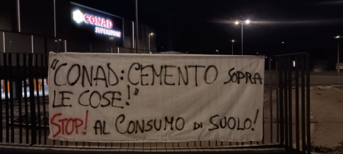 “A Lugo, nel sito nell’area dell’ex acetificio Venturi, si è tenuta l’inaugurazione del nuovo centro commerciale della catena della grande distribuzione che ormai sta imperversando in tutta la Romagna, e non solo. In un Comune già saturo di centri commerciali e di supermercati (12 per 32000 abitanti), questo intervento urbanistico è stato presentato alla cittadinanza come “opera all’insegna della rigenerazione urbana per un futuro sostenibile” da parte dell’amministrazione comunale e dal gruppo della GDO, stravolgendo concetti come“il no al consumo di suolo” diventato “recupero dell’esistente in funzione di uno sviluppo sostenibile non solo per l’ambiente ma anche per le imprese edili che hanno subito più di altre la crisi economica”come dichiarato dal sindaco stesso. Tuttavia, di recupero dell’esistente non risulta nulla, se non una totale demolizione di un insediamento storico per la città di Lugo, con nuova cementificazione: una vera e propria retorica demagogica atta a strumentalizzare la crisi in corso in chiara funzione economica a favore del capitalismo e dell’altare del profitto privato, dato che lo “sviluppo” di cui si parla è solo quello di immobiliari, fondazioni bancarie e grande distribuzione? A questo si associano le solite pratiche di greenwashing, con la realizzazione sul lato ferrovia di un’area verde di 2600 metri quadri, visibile dalla stazione, edulcorando il tutto con una squallida messinscena di “ecologismo di facciata”, come sempre capita quando si tratta, nella sostanza, di innalzare un monumento al capitalismo “verde”.