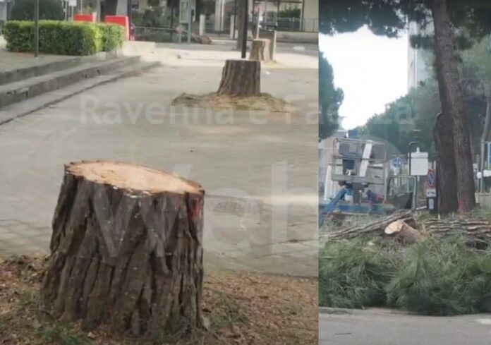 “Riceviamo ai nostri indirizzi una segnalazione firmata, che con mesta impotenza riportiamo: ormai non è quasi più possibile star dietro a tutti gli scempi che vengono perpetrati quotidianamente verso l’ambiente a Ravenna come nel resto d’Italia, e la furia omicida verso gli alberi, trattati come legname usa-e-getta in balia di progettisti all’arrembaggio, taglialegna ed amministrazioni consenzienti, ne è uno degli esempi più diffusi. Follie sul baratro dei cambiamenti climatici e della sesta estinzione di massa, nella pianura più malsana ed inquinata d’Europa.
