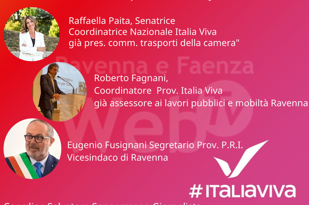 “Italia Viva Provincia di Ravenna è lieta di annunciare un importante tavola rotonda dal titolo “Porto e Infrastrutture, la sfida di Domani”, che si terrà Venerdì 30 Giugno alle ore 17.45 presso il Salone dei Mosaici di via XI Febbraio a Ravenna.