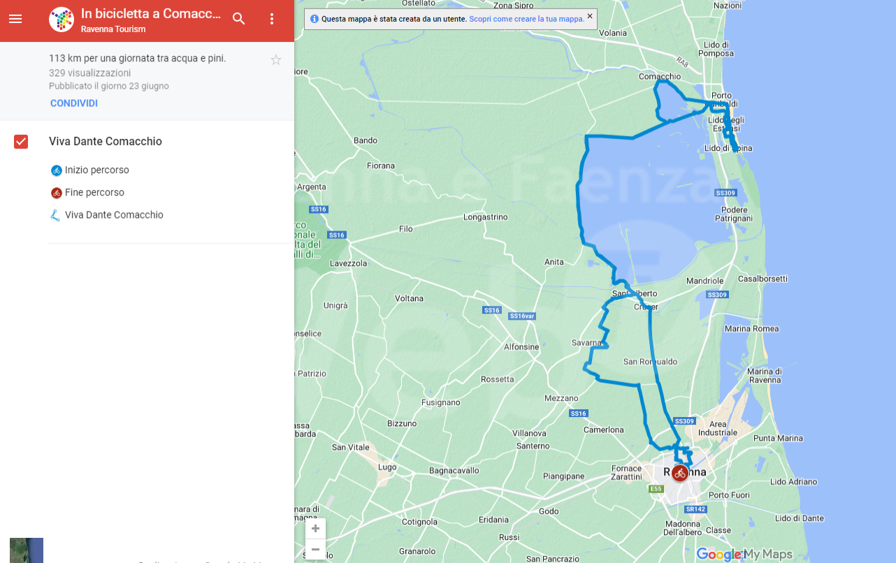 Cartina del percorso Ravenna – Comacchio