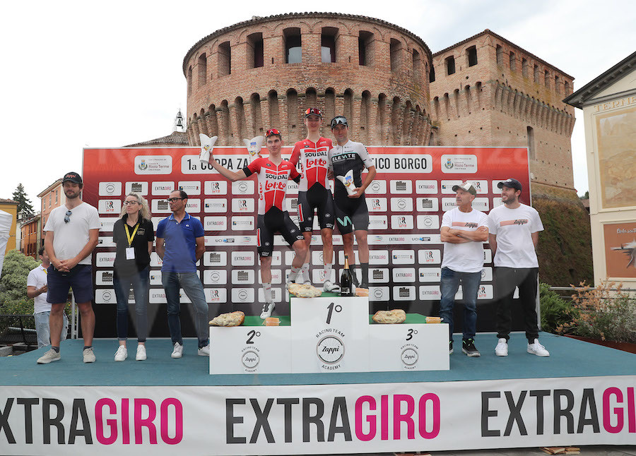 L’ultimo giro rimescola le carte, come prevedibile, con lo spettacolo del Muro di via Ossano: in 1.200 metri, con pendenza media del 10% e massima del 21%, la corsa cambia e si delinea il finale da “classica” del ciclismo. Vincent Van Hemelen della Lotto Soudal Development Team riesce a mantenere 8″ di vantaggio fin sul traguardo di Riolo Terme.