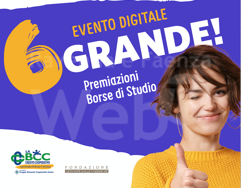 LA BCC Credito Cooperativo ravennate forlivese e imolese e la Fondazione Giovanni Dalle Fabbriche premieranno mercoledì 26 maggio 2021 i vincitori del bando “Borse di studio e di ricerca” riservato ai giovani Soci, figli di Soci e ragazzi del territorio.
