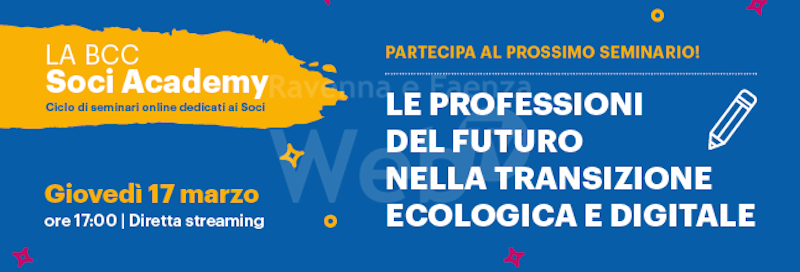 LA BCC SOCI ACADEMY: tornano i seminari online proposti dalla Banca con un appuntamento dedicato alle professioni del futuro nella transizione ecologica e digitale.