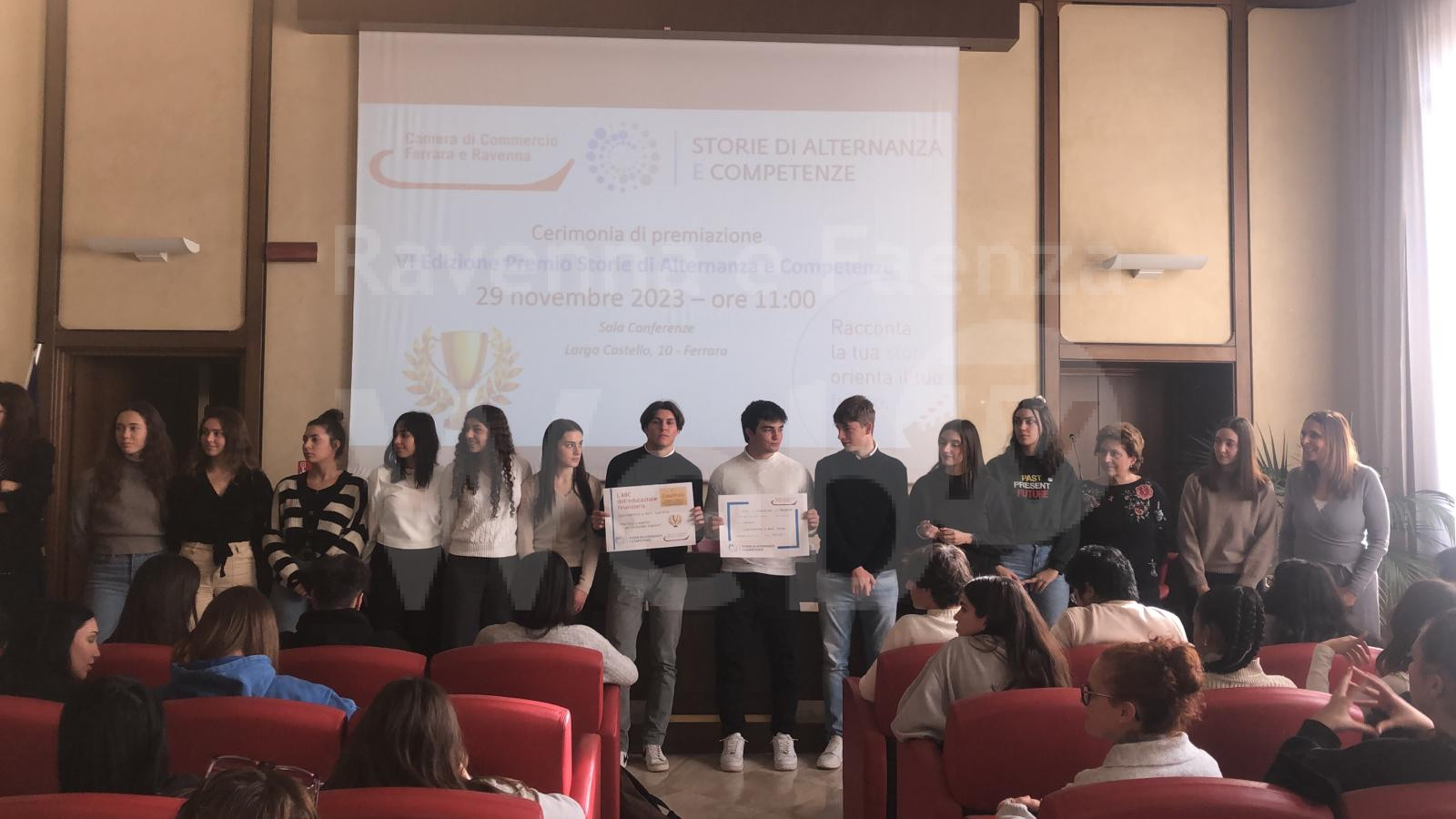 Grande l’interesse e folta la partecipazione per la sesta edizione del Premio “Storie di Alternanza e competenze”, l’iniziativa realizzata dalla Camera di commercio di Ferrara e Ravenna nell’ambito del nutrito programma di attività per valorizzare e dare visibilità ai racconti dei progetti d’alternanza scuola-lavoro ideati, elaborati e realizzati dagli studenti e dai tutor degli Istituti scolastici di secondo grado e che ha avuto il suo culmine, la mattina del 29 novembre, in una affollatissima sala Conferenze. Ben 11, infatti, le candidature pervenute da parte di 7 istituti scolastici con oltre 250 studenti coinvolti, che hanno raccontato le loro esperienze – realizzate in alternanza, tirocinio curriculare o apprendistato – cimentandosi nella realizzazione di racconti multimediali.