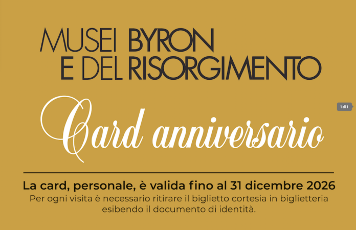 La card (che è anche in vendita online all’indirizzo https://bit.ly/4qjafPo) vale per un anno intero: e dà modo ai possessori di sentirsi sempre più a casa in questi Musei che hanno fatto nel 2025 il giro del mondo sui principali media internazionali. Prova ne è anche l’ultimo prestigioso passaggio dei Musei Byron e del Risorgimento nei giorni scorsi sulla prestigiosa rivista ‘London Review of Books’ mentre subito dopo Natale saranno in visita ai Musei altri due giornalisti inglesi incaricati di svolgere un ampio reportage tra le sale dedicate a Byron, a Garibaldi ed al Risorgimento.