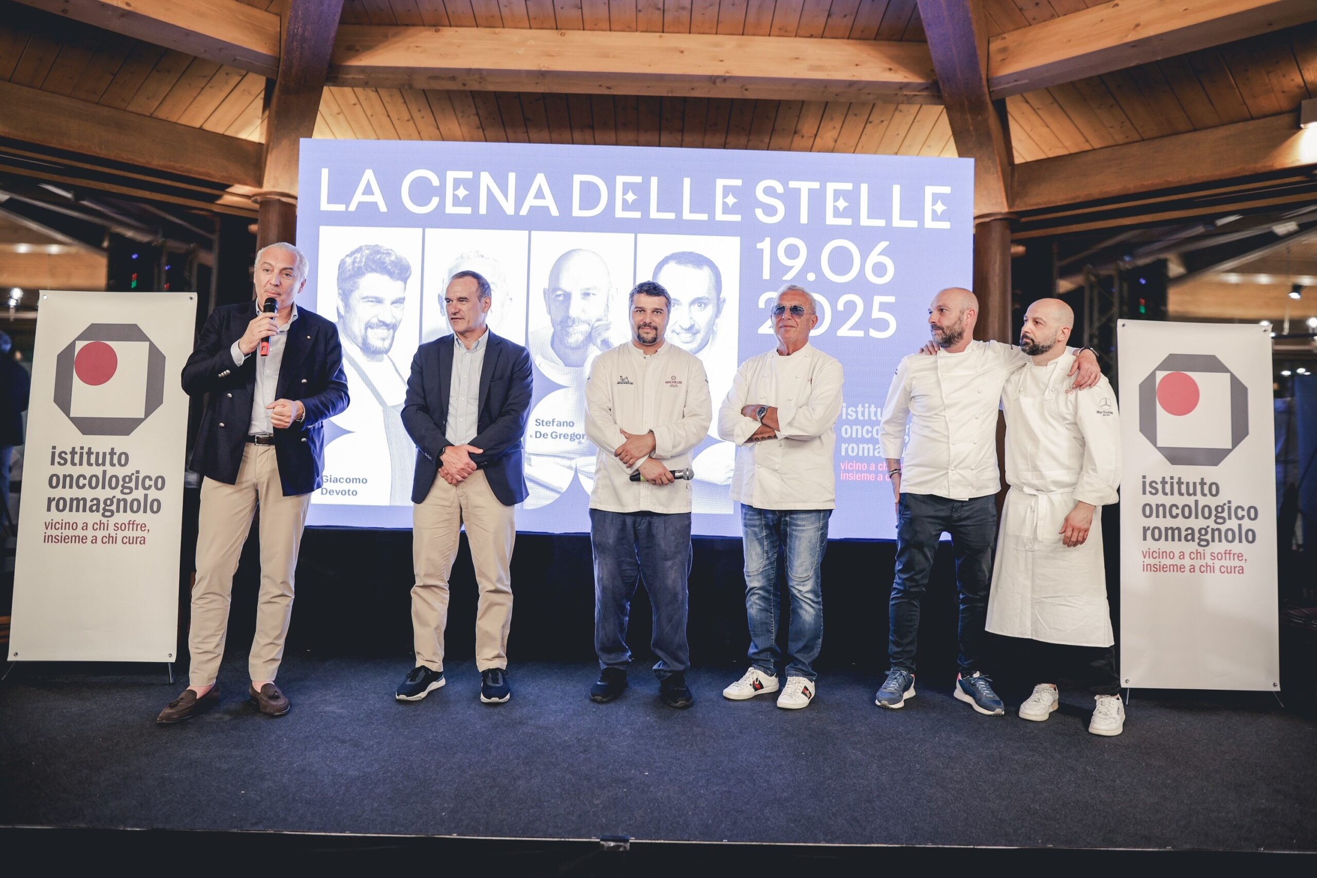 Ieri sera si è tenuta al Villa Abbondanzi Resort di Faenza la quarta edizione de “La Cena delle Stelle”, evento esclusivo in cui l’alta cucina si mette a disposizione della solidarietà e della lotta contro il cancro nato nel 2019 grazie all’amicizia che lega Istituto Oncologico Romagnolo e lo chef Igles Corelli, maestro indiscusso della ristorazione italiana. Anche quest’anno il noto volto di Gambero Rosso Channel e vincitore di 5 stelle Michelin aveva messo insieme una brigata d’eccezione, con Giacomo Devoto agli antipasti, Stefano De Gregorio al secondo e Alberto Faccani al dessert: un team che ha fatto squadra solo per una sera, solo per sostenere la causa della ricerca scientifica che porta al letto dei pazienti nuove prospettive di cura. La Romagna ha, come sempre, dato una bella risposta di responsabilità e di presenza: erano 120 le persone che hanno approfittato di questo “viaggio” nei sapori, per un incasso che ha sforato i 33.000 euro grazie anche alla generosa partnership, che si ripete dall’edizione 2022 della “Cena”, di Terre Cevico. A questi si sono aggiunti i contributi extra arrivati nel corso della serata, 1.400 euro, in seguito alla testimonianza di Laura Lugaresi, medico generico del cesenate che ha portato la propria esperienza di malata oncologica in follow-up, e della proiezione del video girato dallo IOR insieme a due ricercatrici IRST, le giovani dottoresse Chiara Spadazzi e Chiara Casadei, che hanno presentato lo studio METADREAM, a sostegno del quale andranno appunto i proventi dell’evento.