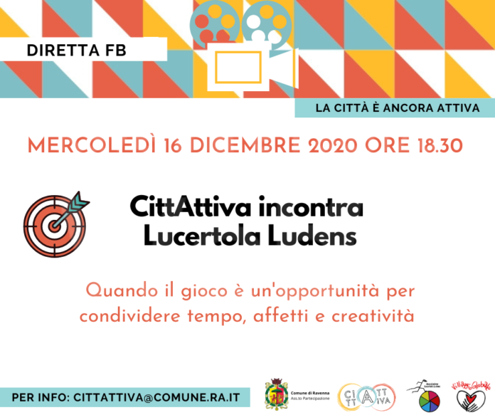 Mercoledì 16 dicembre l’iniziativa si svolgerà alle 18.30, in diretta dalla pagina facebook CittAttiva Ravenna. Protagonista dell’appuntamento sarà Lucertola Ludens, un’associazione di promozione sociale che si occupa di affermare il diritto al gioco dell’infanzia e promuovere una cultura ludica partecipata. L’associazione si presenterà, raccontando le proprie attività e le esperienze di collaborazione nate all’interno di CittAttiva.