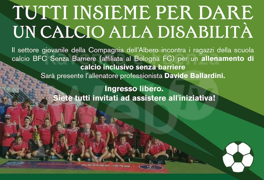 Giovedì 14 aprile il Centro Sportivo della Compagnia dell’Albero (Via Romea, 122- Ravenna) ospiterà, alle 11.00, un allenamento davvero speciale, che coinvolgerà il settore giovanile della sezione calcio della Polisportiva e i giocatori della scuola calcio BFC Senza Barriere, affiliata al Bologna Football Club.