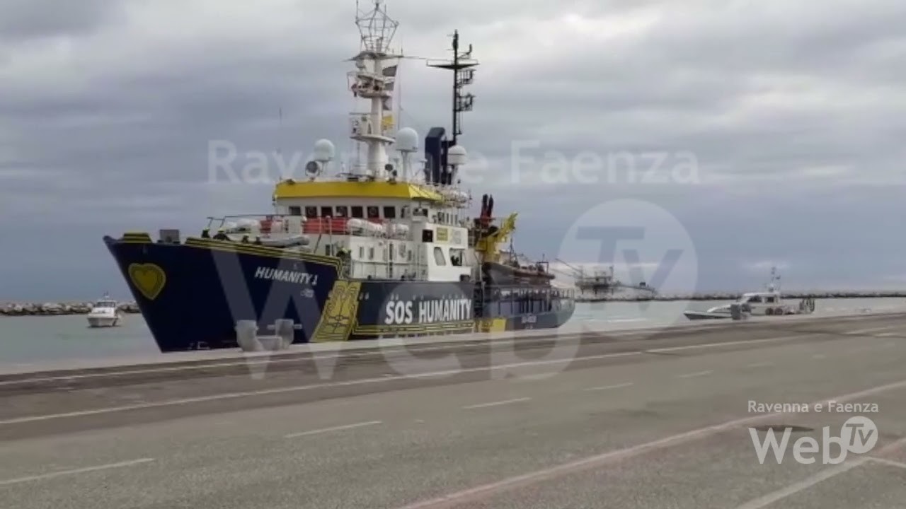 Alle 8.30 la nave Humanity 1 della Ong SOS Humanity con a bordo 69 naufraghi, soccorsi in mare nei giorni scorsi è attraccata al porto di Ravenna.