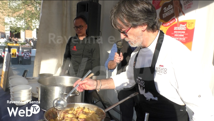 Show cooking dello chef Marco Cavallucci in piazza Kennedy sabato pomeriggio. Terza giornata dedicata alla tradizione gastronomica a Ravenna. In Piazza del Popolo la fiera mercato con i prodotti italiani di Bell’Italia; in piazza Kennedy le tradizioni romagnole di Bella Romagna, evento voluto da Confesercenti. Incontri il tema del fine settimana. Sabato infatti la pasta ripiena romagnola si è accompagnata allo speck del Trentino Alto Adige nel piatto creato dal cuoco di Casa Spadoni. Domenica alle 18 l’ultimo appuntamento. Cucine aperte però sempre dalle 12.