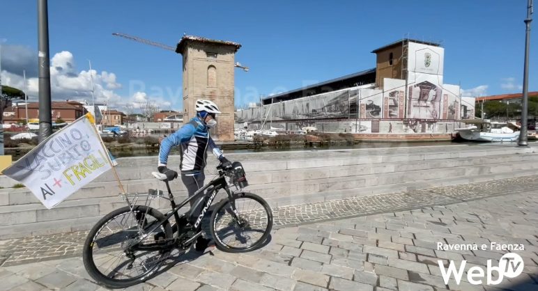 Tracciando dei percorsi con il GPS che ricordino la forma di un polmone, tutti i giorni Achille Abbondanza porta avanti la sua protesta silenziosa pedalando per chiedere che le persone più fragili possano vaccinarsi al più presto contro il Coronavirus. Achille, malato di Fibrosi Polmonare Idiopatica e Vice presidente della Federazione Italia Ipf e Malattie Rare Polmonari (FIMARP), spiega infatti che sono ancora troppe le persone che soffrono di patologie polmonari a non aver ricevuto il vaccino, nonostante il Covid rappresenti una minaccia molto seria per loro. Per questo da ormai una settimana, ogni giorno Achille con la sua bicicletta a pedalata assistita e l’ossigeno macina chilometri esibendo lo slogan “Vaccino subito ai più fragili”.