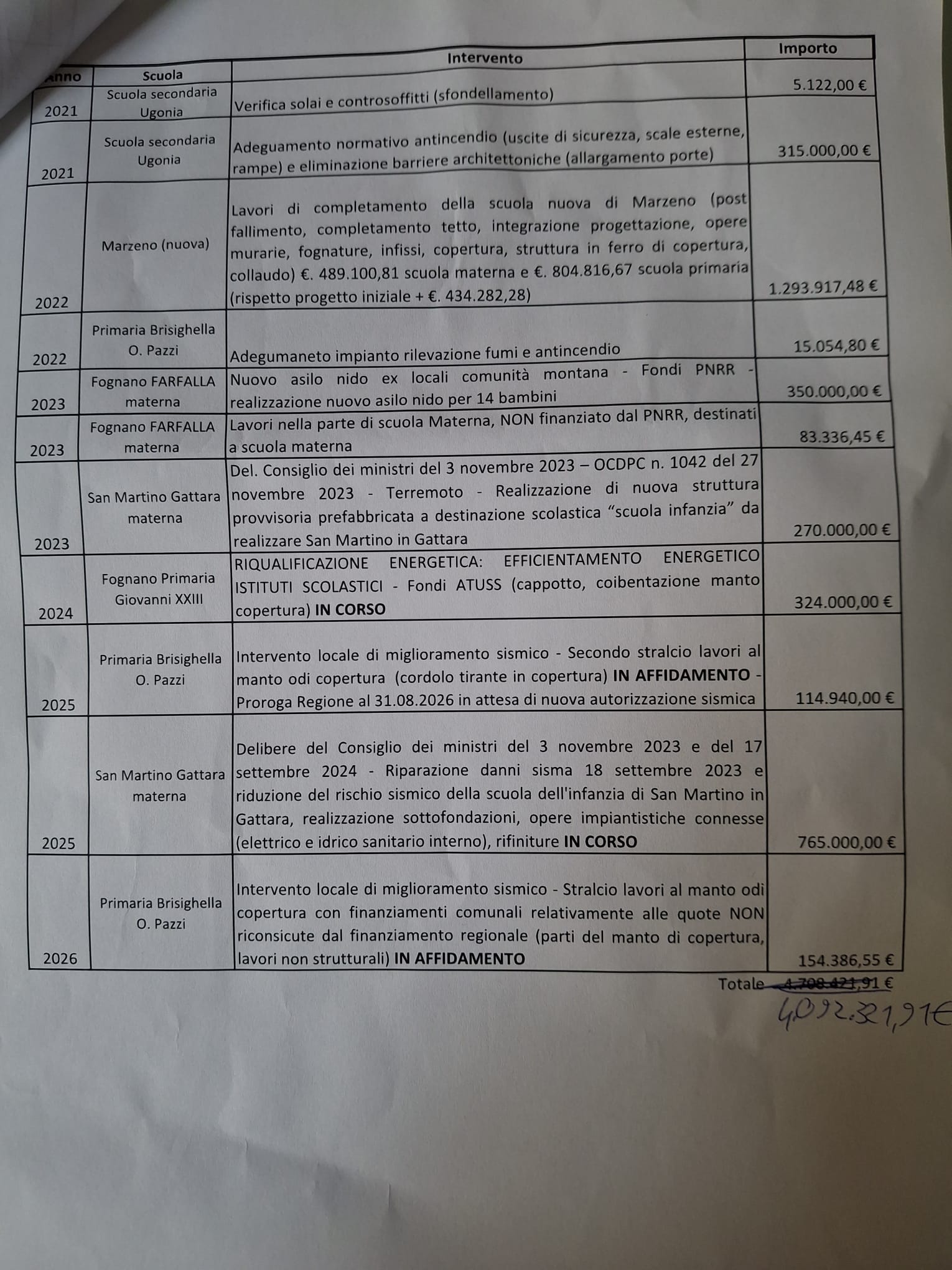 L’elenco dei lavori nelle scuole di Brisighella finanziati negli ultimi anni: