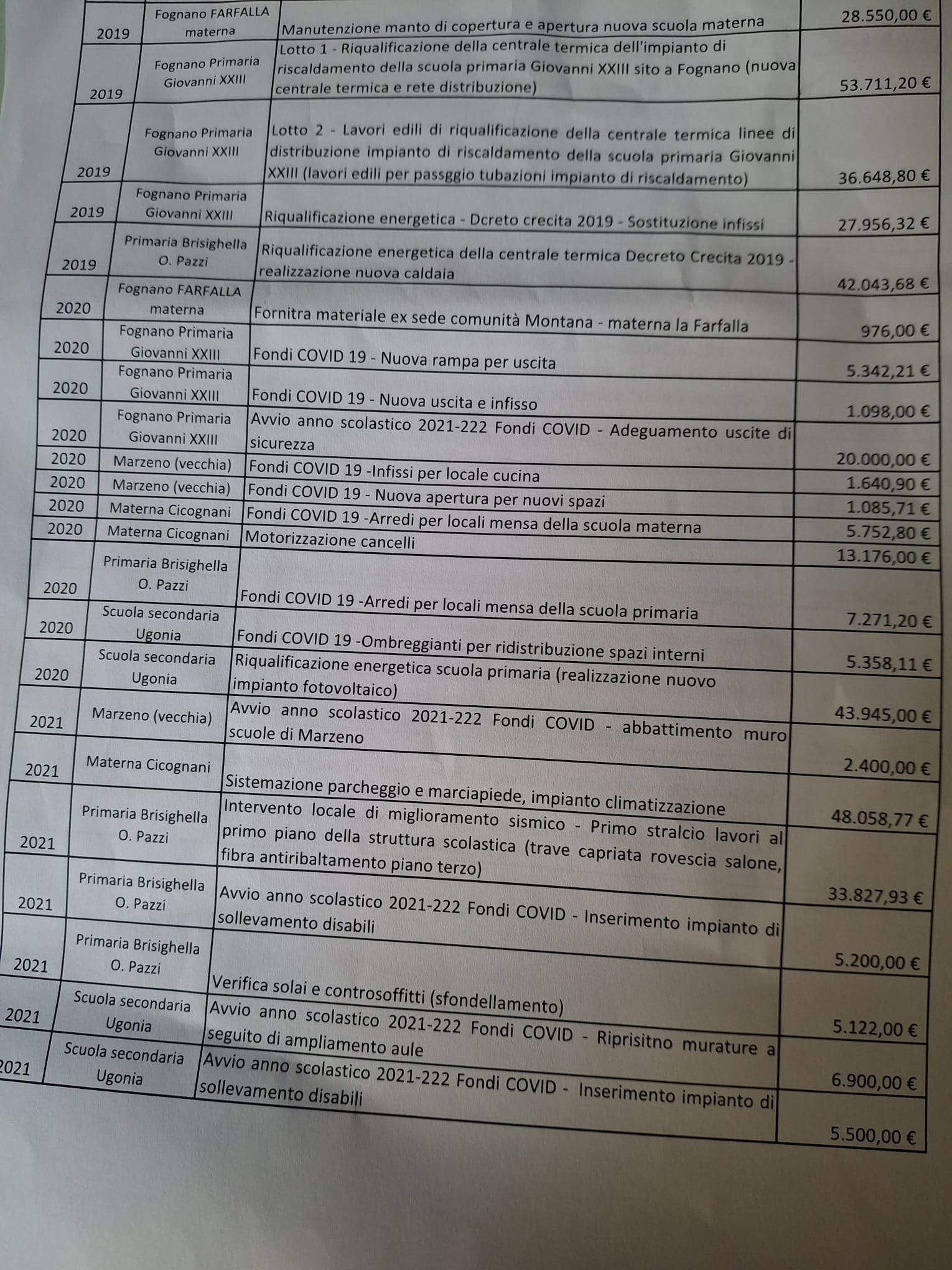 L’elenco dei lavori nelle scuole di Brisighella finanziati negli ultimi anni: