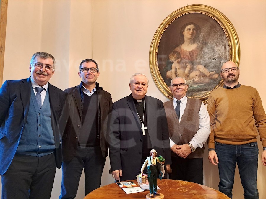 Consegnata al Vescovo della Diocesi di Faenza-Modigliana, Mario Toso, “la florovivaista”, nuova statuina del Presepe 2022 creata da Fondazione Symbola, Coldiretti e Confartigianato.