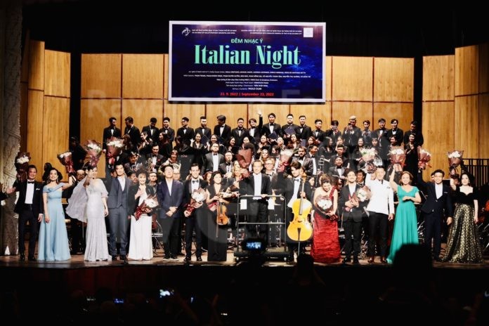 Il lungo programma musicale eseguito il 23 settembre -al Teatro dell’ Opera di Ho Chi Minh – ha compreso non solo sinfonie, romanze e cori da Opere, ma anche alcuni brani strumentali e solistici molto interessanti del repertorio italiano, affidati a tre giovanissimi musicisti della Orchestra: il violoncellista Enrico Mignani, la Violinista Lucrezia Costanzo e il contrabbassista Diego de Santiago.