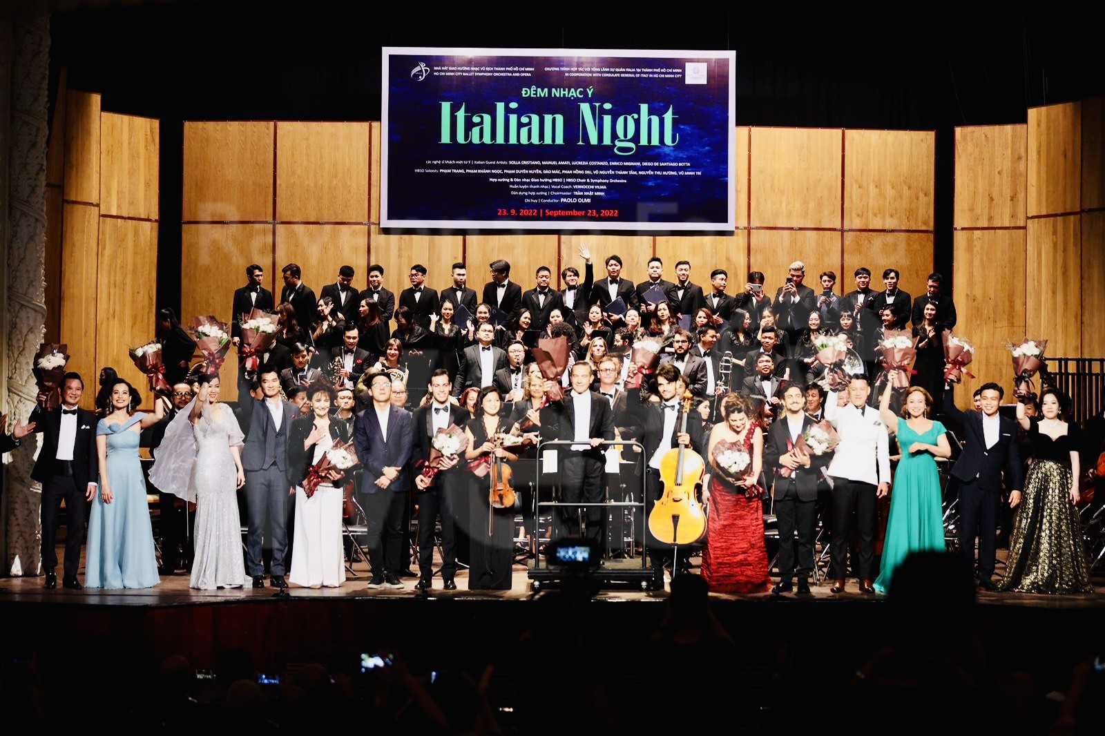 Nei giorni successivi il Coro, i solisti e l’Orchestra dell’Opera di Ho Chi Minh, insieme ai loro giovani colleghi arrivati dall’Italia, hanno effettuato parecchie sessioni di prove di assieme per finire il 23 settembre in un grande Concerto interamente dedicato al repertorio Italiano.